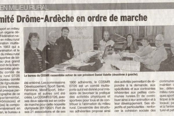 Mise en lumière du nouveau comité directeur du CDSMR 07/26 dans la presse.